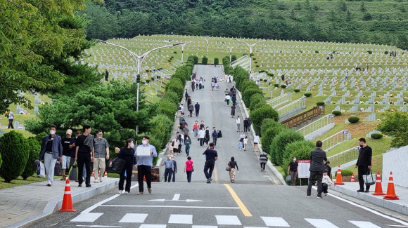 국립영천호국원이 모처럼 붐볐다. 추석인 9월 9일 아침 일찍부터 전국에서 찾아온 참배객들로 호국원내는 하루종일 사람들이 북적였다. 코로나19 거리두기로 3년간 참배가 제한(설 추석 완전 일시 폐쇄)되었으나 거리두기 해제 후 처음 맞는 추석이라 많은 사람들이 몰렸다.