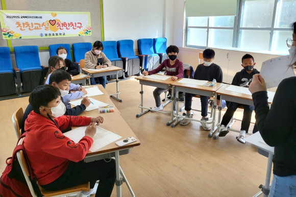 | | | ⓒ 영천시민뉴스 | | 영천초등학교(교장 여은숙)는 교육복지우선지원사업의 하나로 10월 18일부터 1~6학년 학생 24명을 대상으로 총 10회기에 걸쳐 또래관계 및 의사소통능력 프로그램 ‘친친교실♡친한친구’을 운영한다.