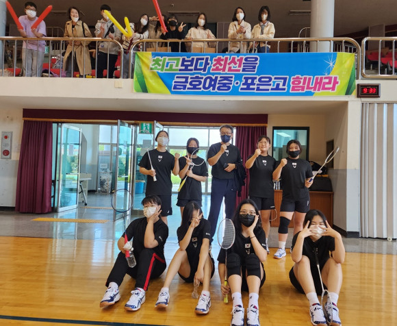 영천교육지원청에서 주최하고 성남여중에서 개최된 배드민턴 대회 여중부에는 금호여중 8명, 여고부에는 포은고 8명이 참가하여 여중부 준우승, 여고부 우승을 거뒀다. 선수, 인솔 교사, 응원단 총 32명이 참여하여 함께 환호하고 응원하는 축제의 장을 만들었다.