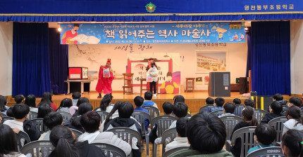 |  | | | ⓒ 영천시민뉴스 | 경상북도교육청 금호도서관은 학교도서관의 운영 활성화와 학생들의 독서 흥미 증진을 위하여 10월 25일 책과 마술을 접목한 ‘책 읽어주는 역사 마술사의 세종대왕 이야기’ 공연을 운영했다.