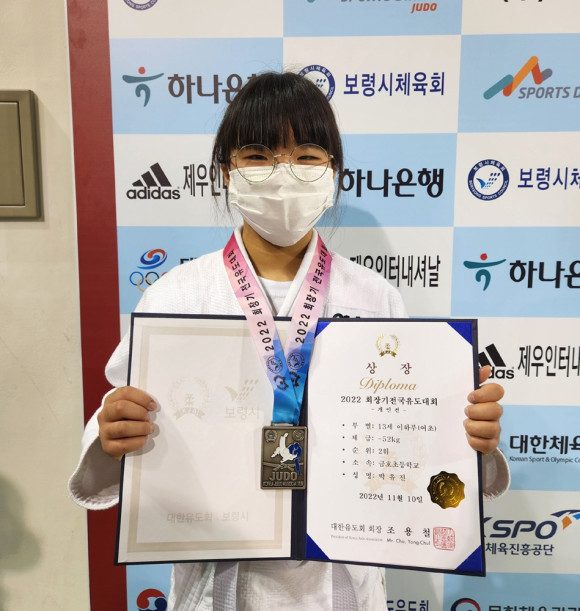 11월 10일 열린 초등부 여자 -52kg급 개인전 경기에서 우수한 경기력으로 5학년 박유진 학생이 은메달을 획득하였다.