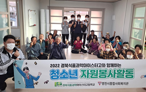 | | | ⓒ 영천시민뉴스 | | 경북식품과학마이스터고(교장 정미정) 재학생 봉사팀은 영천시종합사회복지관과 연계하여 경북 영천시 신녕면 일대의 노인 가구를 위한 봉사활동을 실시하였다. 10월 15일 학생들이 직접, 재활용이 가능한 양말목과 건강에 좋은 편백나무를 이용하여 안마봉을 만들어 마을 경로당에 기증한 것을 시작으로 11월 5일에는 학교와 가까운 곳에 거주하시는 노인 가구 6채를 방문하여 거동이 불편한 어르신들을 위한 주거환경 개선에 적극 참여하였다. 월동용품 제작 및 나누기, 사랑의 김장 나누기 등 앞으로 남은 2회의 봉사활동을 통해 학생들은 환경보호와 나눔의 봉사정신을 이어갈 계획이다.
