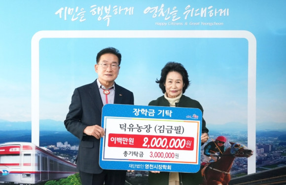 영천시 화북면에 위치한 건강식품 생산업체인 덕유농장(대표 김금필)에서 11월 28일 영천시장학회를 방문하고 장학금 200만원을 기탁했다. 덕유농장은 흑염소와 꽃사슴을 방목하면서 친환경 건강식품을 생산, 전국적으로 유통하고 있다. - 김영철 기자 -