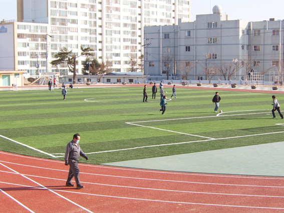 인조잔디구장은 축구장과 운동장 트랙을 모두 설치해 학생들이 체육공간을 더욱 유용하게 사용할 수 있다. 지난 8월 학교에서 입찰을 거치고 예산 4억 원(5,381㎡ 국민체육진흥공단, 영천시)을 들여 이날 준공했는데, 2월 2일에는 인조잔디 고무분말 안전성 검사까지 받아 안전성 '이상무'를 학교운영위원회 등에 통보했다.
