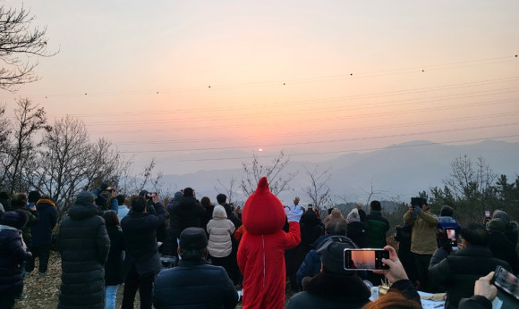 영천시 대창면은 1월 1일 대창2리 부녀회(회장 박옥순) 주관으로 오길리 소재 채약산 정상에서 새해 해맞이 행사를 진행했다. 이날 대창2리 부녀회는 준비한 떡국을, 대창면 경제인연합회(회장 정돈기)에서 준비한 토끼 저금통을 나눠주면서 서로에게 덕담도 나누는 화합의 시간을 가졌다.