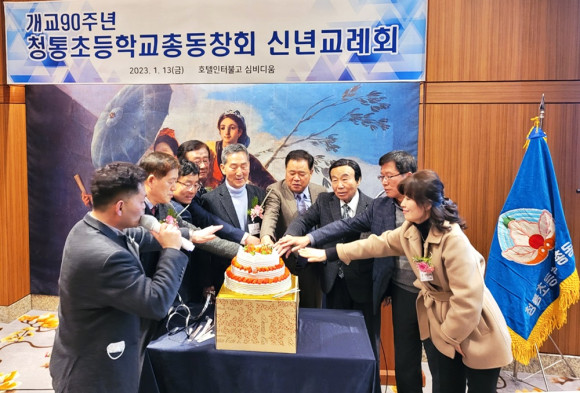청통초등학교 총동창회(회장 이영곤·36회)는 1월 13일 대구 인터불고 호텔에서 정선득 고문(21회), 김진정 21대 회장(22회), 김인환 자문위원장(27회)과 각 기별 회장단 및 본부요원인 회원들이 참석한 가운데 개교(1933년도) 90주년 기념 신년교례회를 가졌다.