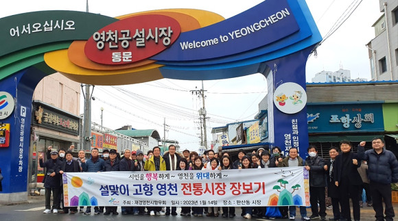 재경영천시향우회는 설을 앞두고 1월 14일 고향 영천을 방문해 전통시장에서 장보기 행사를 가졌다. 이날 조영희 향우회장과 향우회원 40여 명은 3시간여 동안 시장 곳곳을 돌며 곰탕골목에서 식사를 하고 농·특산물 등 다양한 제수용품들을 구매했다.
