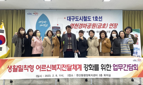 영천시 완산동행정복지센터는 2월 8일 노인맞춤돌봄서비스 수행기관 마야실비노인요양원과 생활밀착형 어르신 복지 전달체계 강화를 위해 간담회를 개최했다.