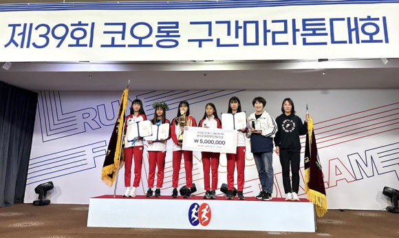 성남여자중학교 육상부는 3월 25일 경주일원에서 열린 제39회 코오롱 구간마라톤대회에 출전해 여자중등부 우승을 차지했다<사진 위>.