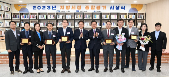 이철우 도지사는 4월 21일 도청 K-창에서 2023년 지방세정 종합평가에서 우수한 성적을 거둔 11개 시군에 대한 시상을 했다. 대상 포항을 비롯해 최우수상 우수상 장려상 특별상을 각각 선정했다. 경북도는 지난해 지방세 5조4067억원을 징수해 처음으로 지방세 5조원 시대를 열었다.