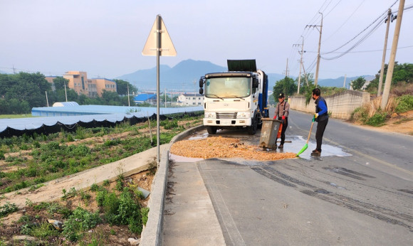 오미동 음식물처리 공장 도로 더럽혀