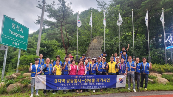 국제로타리3630지구 8지역(대표 서원기)공동봉사 사업인 칡넝클 제거사업 및 환경정화 활동이 7월 15일 화북면 상송리에서 군위간 도로변에서 열렸다. 이번 활동은 지역 6개 로타리클럽 대표와 회원들이 모두 참여하고 있으며 10년째 봉사활동을 이어오고 있다.