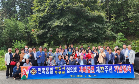 민족통일 영천시협의회(회장 민순남)는 9월 20일 전남 순천만 정원에서 민족통일 무안군협의회와 자매결연 22주년 기념식을 개최했다. 민순남 회장은 무안군협의회 김주남 사무국장에 공로패, 이학기 무안군 협의회장은 영천시협의회 권영환 이사에 공로패를 전달했다. 양 단체는 포도와 고구마 특산품을 서로 교환했다.