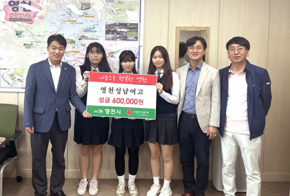 영천성남여고는 10월 10일 어려운 독거노인에 전달해 달라며 교내 플리마켓 ‘기부하면 기부니 좋거든요’ 수익금 60만원을 영천시에 기탁했다. 플리마켓 캠페인은 지난 9월 20일 성남여고 체육관에서 실시해 생활용품, 학용품, 도서 등을 판매한 것으로 수익금을 마련했다.