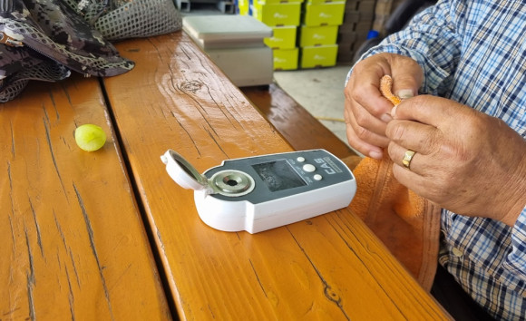 휴대용 당도 측정기 사용 농가가 늘어나고 있으나 샤인머스켓 가격은 예년에 비해 점차 떨어지고 있다. 지난해 샤인머스켓 가격 폭락으로 설익은 과일 출하금지 캠페인에 나선 농민단체들이 스스로 휴대용 당도 측정기를 구입, 현장에서 당도를 측정하고 있다. 출하 당도는 16브릭스 이상이다.