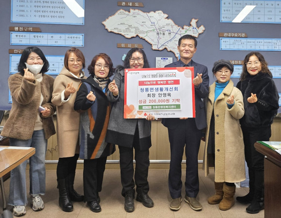 청통면 생활개선회는 이번 성금 기부뿐만 아니라 매년 소외이웃 돕기 등 다양한 봉사활동을 펼치고 있으며 가족공동체 의식을 회복하고 행복감을 증대시킬 수 있는 다양한 효행사를 이어오고 있다. 안영옥 생활개선회장은 “적은 금액이지만 한파와 경제적으로 어려운 이웃들에게 조금이라도 위로가 되고자 성금을 기부하게 되었다. 다들 힘내서 훈훈하게 겨울을 났으면 한다.”고 전했다.