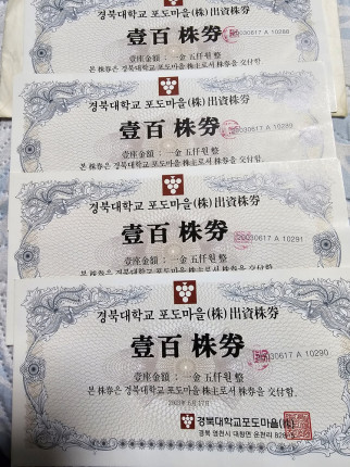 ↑↑ 2003년 경북대포도마을 발행 주권.