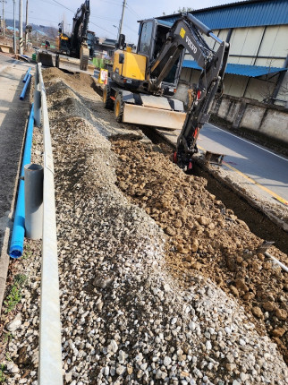 청통면 소재지 노후 수도관 교체 작업을 하고 있는데 수도관 매설 전 모래를 넣지 않고 석분을 사용하고 있다고 주민이 지적했다.