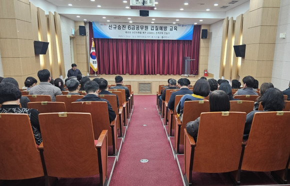 영천시는 지난 3월 15일 영천시립도서관 지산홀에서 신규 승진 6급공무원을 대상으로 갑질예방교육을 실시했다.