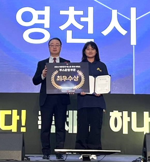 영천시, 대한민국 대표 축제 박람회 영천시는 지난 4월 26일부터 28일까지 부산 벡스코에서 열린 ‘제4회 대한민국 대표 축제 박람회’에 참여해 부스운영부문 ‘최우수상’을 수상했다(사진).