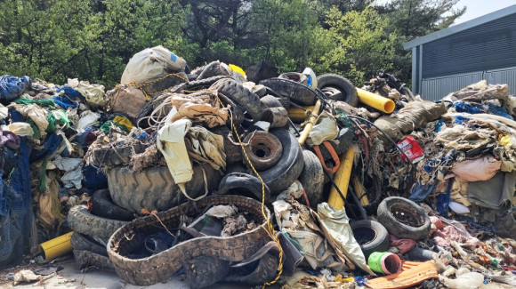지난 4월 25일 현장을 관찰하니 갖다 버린 폐기물 더미가 한가득 있었다. 폐기물 더미를 살펴보니 바다에서 사용하는 거물, 차량 타이어, 중장비 타이어, 가정용 쓰레기 등 다양한 종류의 폐기물들이 섞여서 더미를 이루고 있었다.