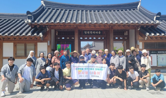 | | | ⓒ 영천시민신문 | | 영천중학교(교장 김정남) 교육복지 웃음나눔자원봉사단은 5월 4일 한의마을에서 ‘용평마을 어르신들과 함께하는 효사랑 나들이 자원봉사’를 실시했다. 1 ~ 3학년 15명의 웃음나눔자원봉사단은 5월 8일 어버이날을 맞아 용평마을 양로원 어르신들을 위한 특별한 추억을 계획했다. 이날 하루 학생들은 어르신들의 손주가 되어 투호, 윷놀이 등 전통놀이와 1대1 짝궁 미션 활동, 함께 식사하기 등 기쁜 마음으로 자원봉사에 임했다. 어르신들이 혈액순환과 건강에 좋은 한방족욕을 하는 동안 학생들은 짝궁어르신들의 어깨를 주무르며 대화의 시간을 가졌다.