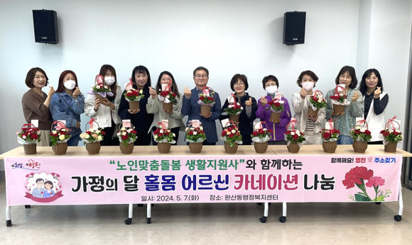이날 자녀가 없거나 있어도 돌봄을 받지 못하는 홀몸 어르신 20가구의 가정을 직접 방문해 효·사랑의 마음으로 카네이션을 직접 전달하면서 건강과 안부를 확인했다. 행사에 참여한 한 생활지원사는 “어르신들께 사랑과 감사의 마음을 직접 전달할 수 있어 기쁘다.”며 “앞으로도 어르신들을 보살피는데 최선을 다하겠다.”고 전했다.