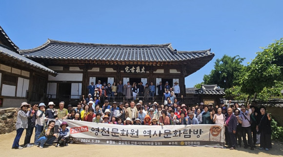 영천문화원(원장 류시홍) 회원 190여명은 지난 5월 29일 ‘24년 영천문화원 역사 문화탐방(안동하회마을 일원)을 다녀왔다. 안동 하회마을 풍산 류 씨 종손님들의 환대를 받으며 시작된 투어는 하회마을 자체 문화해설사의 하회마을과 부용대에 대한 설명으로 진행됐다. 하회마을로 널리 알려진 민속 마을은 2010년 8월 유네스코 세계문화유산으로 지정된 명소이며 별칭으로 ‘하회민속마을’ ‘안동 하회마을’ ‘하회민속촌’ 등으로도 불린다. 본래 풍산 류씨(柳氏)가 터전을 마련한 곳으로 조선 중기의 문신(文臣) 류성룡의 출신지이기도 한 곳이다.
