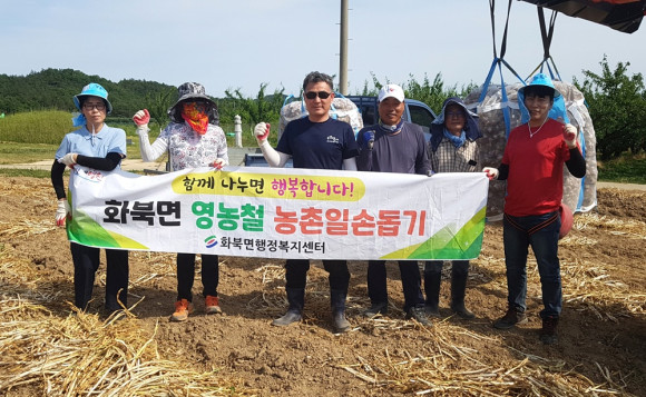 이번 일손 돕기는 일손부족으로 어려움을 겪고 있는 화북면 마늘 재배농가의 요청에 따라 더운 날씨에도 불구하고 오산리, 오동리의 마늘밭 3327㎡에서 마늘 줄기 절단 작업에 힘을 보탰다.