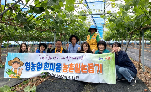 | | | ⓒ 영천시민신문 | | 중앙동은 지난 5월 21일 본격적인 영농철을 맞아 일손 부족으로 어려움을 겪고 있는 고령의 독거 농가를 위해 포도 순따기 농촌 일손돕기를 실시했다.