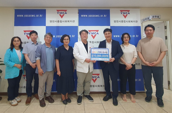 영천시종합사회복지관(관장 정일석)은 영남대학교 영천병원(병원장 이원재·사진 맨 좌)사회공헌활동 금호윤성행복드림사업 후원기금 전달식을 실시했다. 2017년부터 현재까지 8년동안 결연후원 약정체결에 따른 사회공헌활동으로 매년 1000만원의 지정기탁사업을 통해 소외계층 밀집 주거단지 내 복지서비스 제공을 위한 금호윤성행복드림사업을 실시하고 있다.
