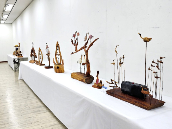 이번 전시회는 ‘행복솟대 높이 날다’ 회원전인데 경북에서는 경산 포항에 이어 3번째이자 협회 전체로는 10번째 전시로 수천 년을 이어온 솟대 문화의 상징적 의미를 되새기고 우리 전통문화의 다양성을 널리 알리고 계승하고자 현재적 예술품으로 승화시킨 작품 60여점이 전시됐다.