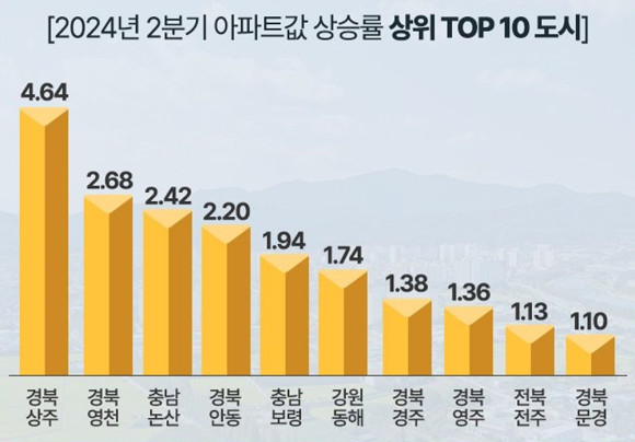 그러나 본지에서는 한국부동산원의 2024년 2분기 전국아파트 가격 상승률을 근거로 보도했다. 근거에 의하면 상주시가 전국아파트 가격 상승률 1위를 기록하고 영천시가 2위를 기록했다는 것이다.