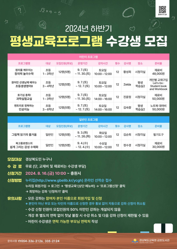 금호도서관 김화연 관장은 “도서관에서 준비한 다채로운 독서의 달 행사를 통해 지역에 책 읽는 문화가 확산되어 주민들이 도서관을 더욱 자주 이용하는 기회가 되길 바란다.”고 밝혔다.