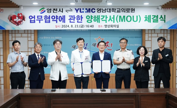 영천시는 지난 8월 23일 영남대학교의료원과 경영 위기를 겪고 있는 영남대학교의료원 산하 영천병원의 재정지원을 위한 양해각서(MOU)를 체결했다. 재정 규모는 지역 응급의료기관인 영남대학교 영천병원의 응급실 전담의사 인건비를 예산의 범위 내에서 지원한다. 영남대학교 영천병원은 의료진의 전문성을 강화하고 최상의 의료서비스를 제공하며 경영 이익금은 전액 영천에 재투자한다는 내용의 양해각서에 서명했다. 양해각서(MOU)는 2부를 작성하여 각각 보관하고 법적 효력을 위하여 공증을 받을 예정이다.