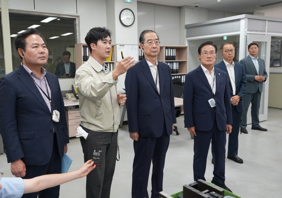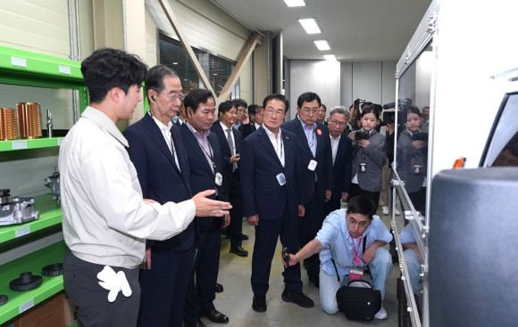 한 총리는 한호산업의 경주공장을 방문해 뿌리기술을 활용한 절단동, 단조동, 후처리동 등 뿌리 공정현장을 둘러본 후 영천공장(한호에코스티)으로 이동해 경주공장에서 나온 생산품을 정밀가공, 조립, 검사측정 등을 통해 생산제품을 고부가 가치화해 수요기업에 납품하는 현장을 둘러보았다.