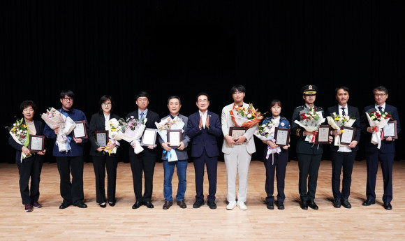 이날 수여식은 지역을 위해 각자의 자리에서 묵묵히 헌신한 수상자의 자긍심을 고취하고 감사의 마음을 전하고자 마련됐으며 도정 및 시정발전 유공자 34명에게 표창을 수여했다.