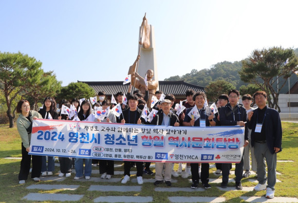 영천YMCA(이사장 김용백)에서는 지역청소년 24명을 대상으로 10월 12일 경북 영천, 안동, 영양일대의 항일 유적지 역사문화탐방을 실시했다. 이날 국내탐방은 영남신학대 정경호 명예교수의 해설로 안동 경상북도 독립기념관 탐방을 시작으로 김동삼선생 생가터 답사, 석주 이상룡선생의 임청각, 영양 남자현지사 생가터, 영천 충효재 및 산남의 진 활동터를 중심으로 진행됐고 간식은 풀무원 푸드머스에서 후원했다.