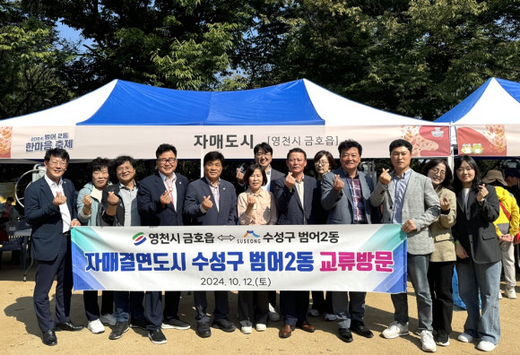 이번 방문은 범어2동의 초청으로 자매결연 교류사업 발전방안을 논의하고 축제 방문객 대상으로 영천시 특산물인 샤인머스켓과 대구 군부대 영천 유치 등을 적극적으로 홍보했다.