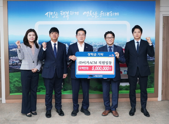 ㈜이가ACM은 경산에 위치한 건설사업관리 및 감리회사로 영천지역 인재를 위해 1000만원을 기탁함과 더불어 직원들도 500만원의 장학금을 기탁했다. ㈜이가ACM은 사회공헌 활동의 일환으로 올해 봉사단을 창단하고 체계적인 봉사활동 실현에 앞장서고 있으며 지난 18일 임고면에 위치한 포도밭에서 20여 명의 직원들이 함께 구슬땀을 흘리며 포도수확을 도왔다. 임호빈 대표는 “이번에 영천시 지역 인재 육성을 위한 장학금을 기탁하게 돼 뜻깊다. 학생들이 미래의 꿈을 이루어 나가는 데 도움이 됐으면 하는 마음에서 직원들과 함께 마음을 모았다.”고 전했다.