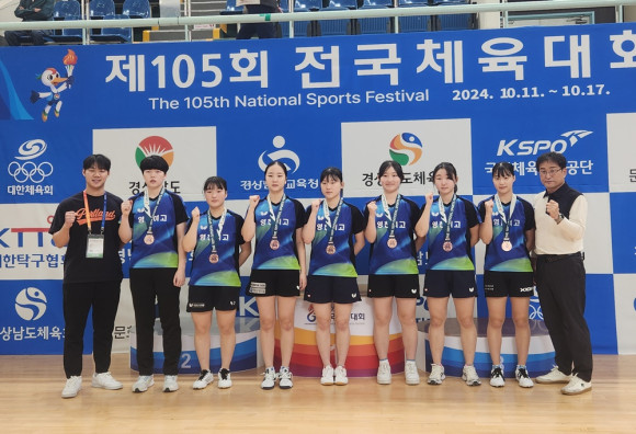 ↑↑ 탁구 여고부 단체전에서 3위를 차지한 영천여고 학생들(임지수 외 6명).