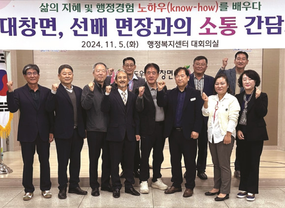 대창면(면장 박상우)은 11월 5일 대창면 행정복센터 대회의실에서 선배 면장 등 10여 명을 초청 하여 ‘삶의 지혜 및 행정경험 노하우를 배우다’ 주제로 소통 간담회를 개최했다.