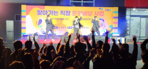 영천상공회의소는 매년 영천시의 지역기업 지원사업의 일환으로 지역 내 근로자들의 근무현장을 직접 찾아가 문화콘텐츠를 제공하는 ‘찾아가는 직장 문화배달’ 행사를 지난 10월 30일 삼양연마공업(주) 사옥에서 개최했다.