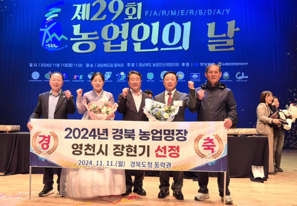 영천시는 11월 11일 ‘경상북도 농업인의 날’ 행사에서 농업명장에 장현기 청암농산 대표(자양 보현), 농업인 대상 축산부문에 우지원 대영농원 대표(청통 애련)가 수상하는 영광을 차지했다.