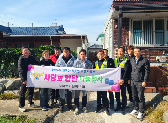 서부동 자율방범대(대장 조현우)는 11월 20일 관내에 거주하는 저소득 가정을 직접 방문해 사랑의 연탄 500장을 전달했다.