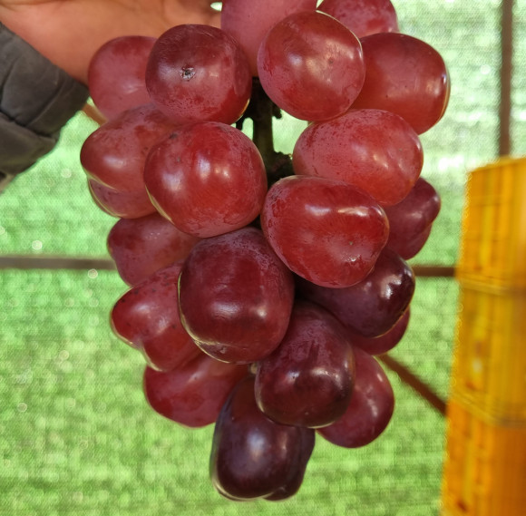 새로운 포도 품종이 인기를 누리고 있다. 샤인머스켓 후속 품종으로 지역에선 약4~50 농가에서 재배하고 있는 일본 신품종 후지노카가야키가 10월 말 김천 경매시장에서 1송이(1등급) 3만원에 거래되고 2등급 1송이는 1만원을 조금 넘는 가격에 거래됐다.