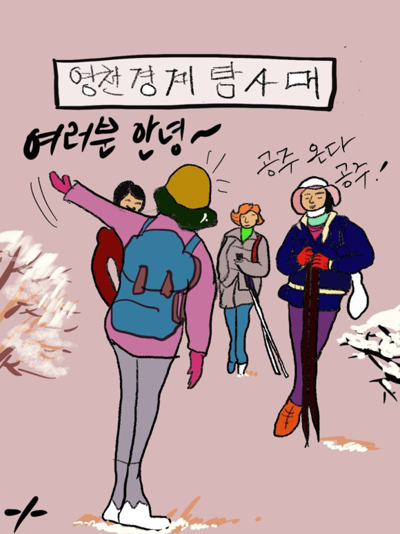 그림을 그린 정수정 대원은 “영천시경계탐사대가 너무 좋아서 추억을 한번 그려봤다. 경계탐사대가 오랫동안 지속됐으면 한다.”고 했다.