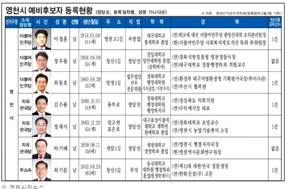 ↑↑ 2018년 영천시장 예비후보자 등록현황(시민신문 자료사진).