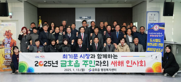 | | | ⓒ 영천시민신문 | | 영천시는 1월 13일 금호읍행정복지센터 3층 대회의실에서 최기문 시장, 시의원, 관내 기관단체장, 이장, 주민, 고향 출신 공무원 등 100여 명이 참석한 가운데 ‘2025 금호읍 주민과의 새해 인사회’를 성황리에 개최했다.