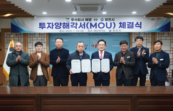 영천시는 지난 1월 24일 시청 영상회의실에서 영천시와 ㈜해영(대표 한명석) 관계자 등이 참석한 가운데 투자유치 양해각서(MOU)를 체결했다.